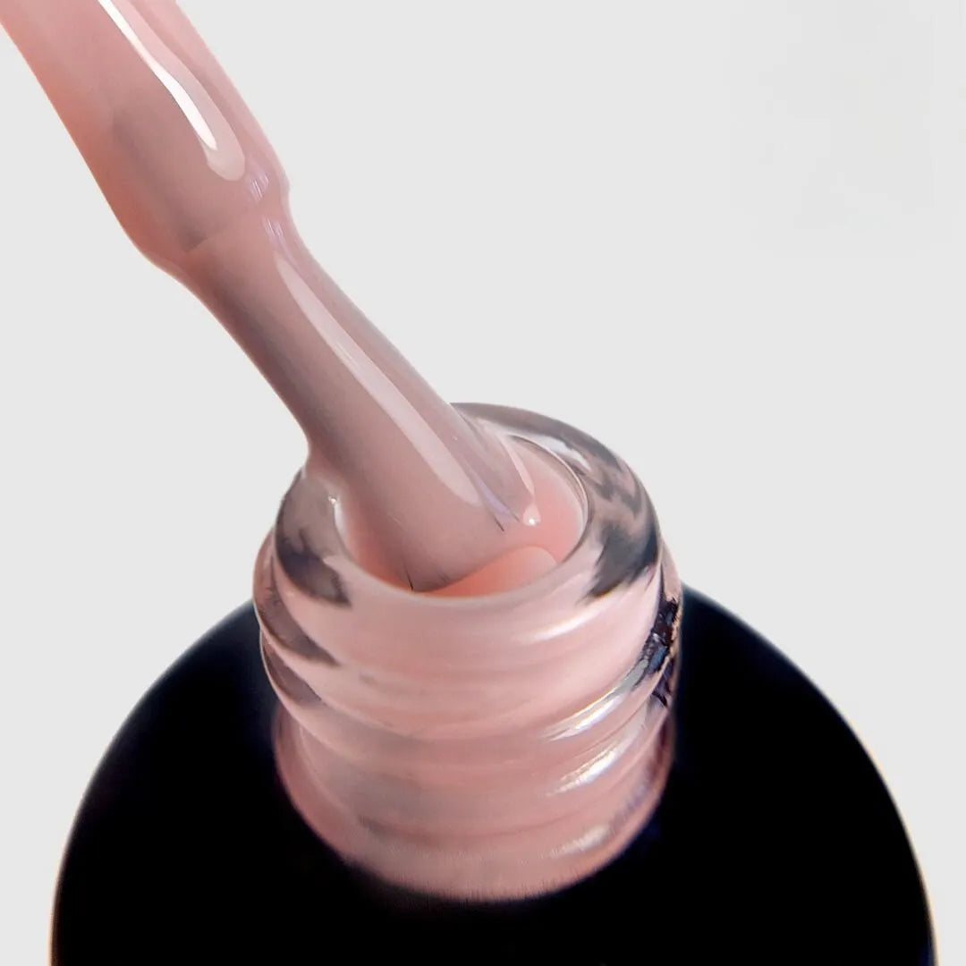 COMMENT UTILISER : Dépolissez doucement le carreau avec un bloc de polissage. Appliquer une couche de Rubber Base sur l'ongle dégraissé avec du nettoyant et durcir sous une lampe UV/LED. Pour construire ou étendre l'ongle, appliquez une deuxième couche de Rubber Base, marquez l'apex et durcissez sous une lampe UV/LED. Appliquez ensuite une couche de vernis hybride coloré ou Flexi Gel sur la base durcie.